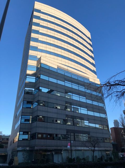 明治通り沿い、ガラス張りの外観が特徴的です。内装セットアップになっていますのでご入居時の初期費用と移転期間の削減が可能です。