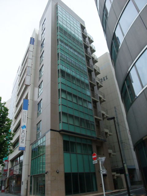 靖国通り沿いのペンシルオフィスビル岩本町駅徒歩2分の立地2004年竣工・築浅の新耐震基準の物件です。緑のパネルが外観のアクセントになっています。